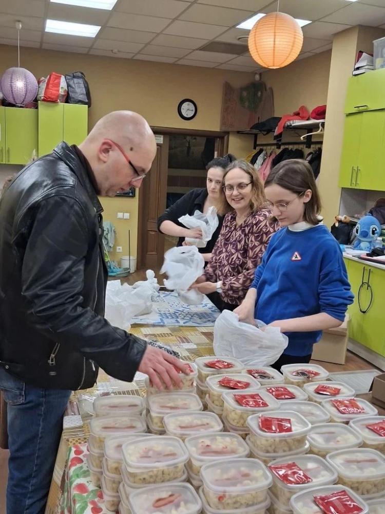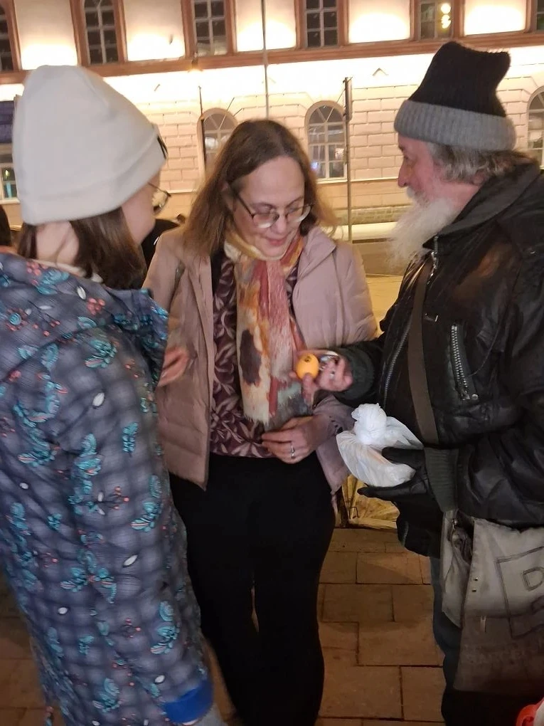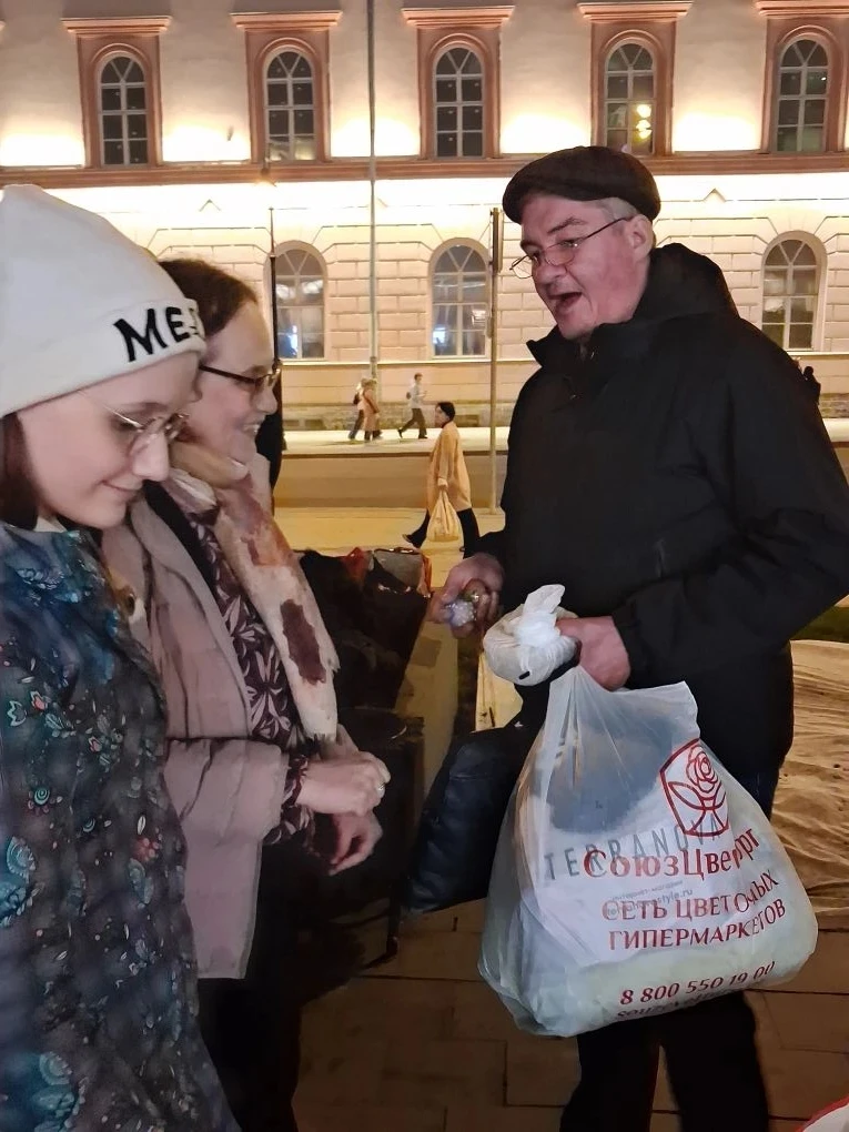 В Светлую Пятницу семья Игоря, Юлии, Анны Беловых, прихожан нашего храма, приняла участие в еженедельной раздаче еды для бедных благотворительного проекта «Друзья общины святого Эгидия» .