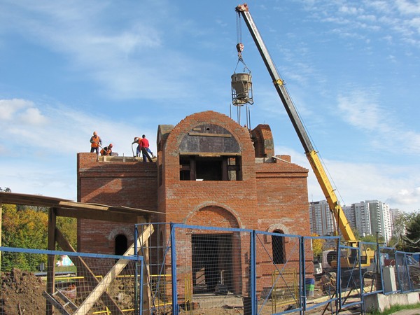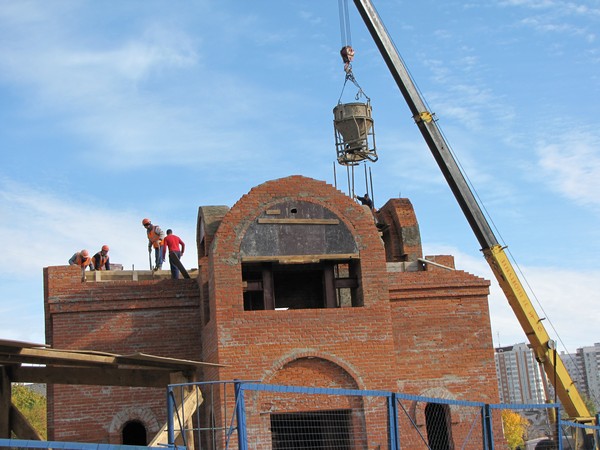 Строительные работы в Казанском храме идут стремительными темпами. За последний месяц храм отштукатурен изнутри и снаружи, вставлены окна, залита стяжка пола, благоустраивается территория вокруг храма. 12 декабря состоялось одно из важных событий в деле строительства и возрождения Казанского храма — долгожданный малый купол с крестом увенчал колокольню над входом в храм. Крест для христианина — символ победы над смертью. Его водружение — ни с чем не сравнимая радость для верующего сердца. Рука сама поднимается для того, чтобы перекреститься. А какое утешение в любой момент иметь возможность увидеть крест из окна своей квартиры!
