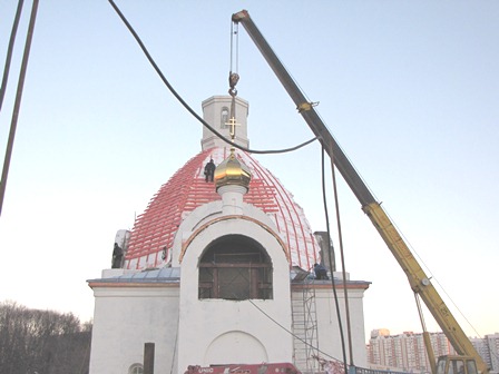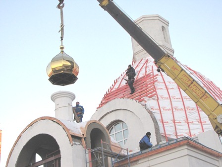 27 декабря во второй половине дня на Казанский храм подняли главный купол. Предлагаем посмотреть фоторепортаж этого знаменательного события!