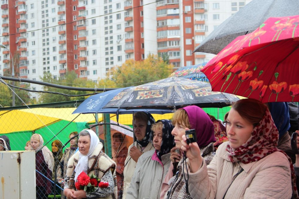 В маленькой часовне Святых преподобномучениц Великой княгини Елисаветы и инокини Варвары, расположенной рядом со строительной площадкой, настоятель храма отец Александр Зорин и молодой приход молятся об успешном возведении дома Божьего, не забывая о глубокой связи с прежним храмом, незримо освящающим эту местность.